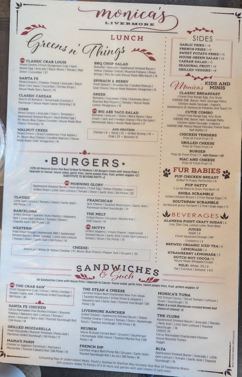 Welcome to Monica's Livermore, your new favorite American eatery nestled in the heart of Livermore, CA. Located at 2074 Second St, this bustling restaurant is a community hotspot known for its diverse and mouthwatering menu.